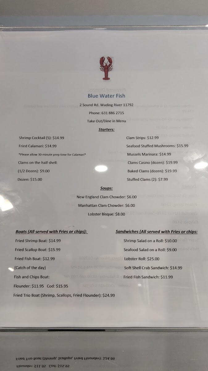 Welcome to Blue Water Fish, a delightful seafood haven located at 2 Sound Rd, Wading River, NY. Here, the ocean's bounty is presented with exceptional care, showcased in dishes like stuffed clams, fried cod sandwiches, and pan-seared tuna salad. Customers rave about the freshness and preparation of every plate, which not only pleases the palate but creates memorable dining experiences.